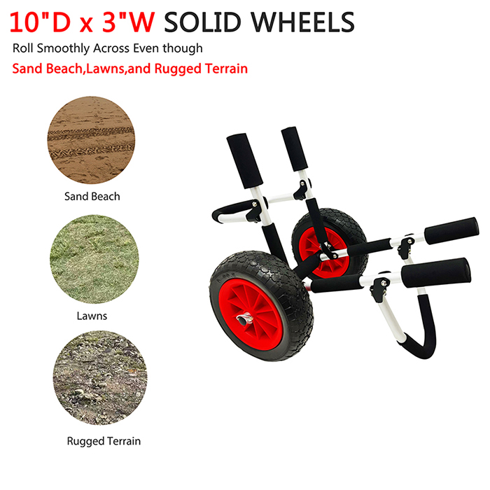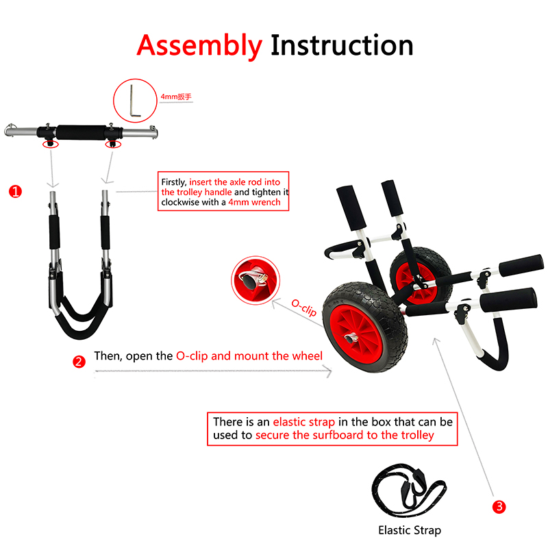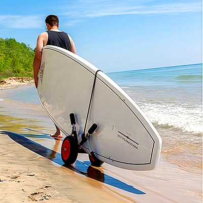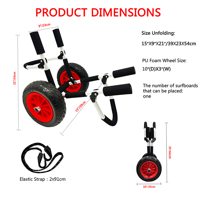 The Single Paddle Board Cart is specifically designed to provide safe and convenient transportation for one boards, ensuring ease and comfort throughout your journey. Crafted with exceptional quality, the cart features a high-quality aluminum construction that combines durability with a lightweight design, enabling it to effortlessly bear significant weight.